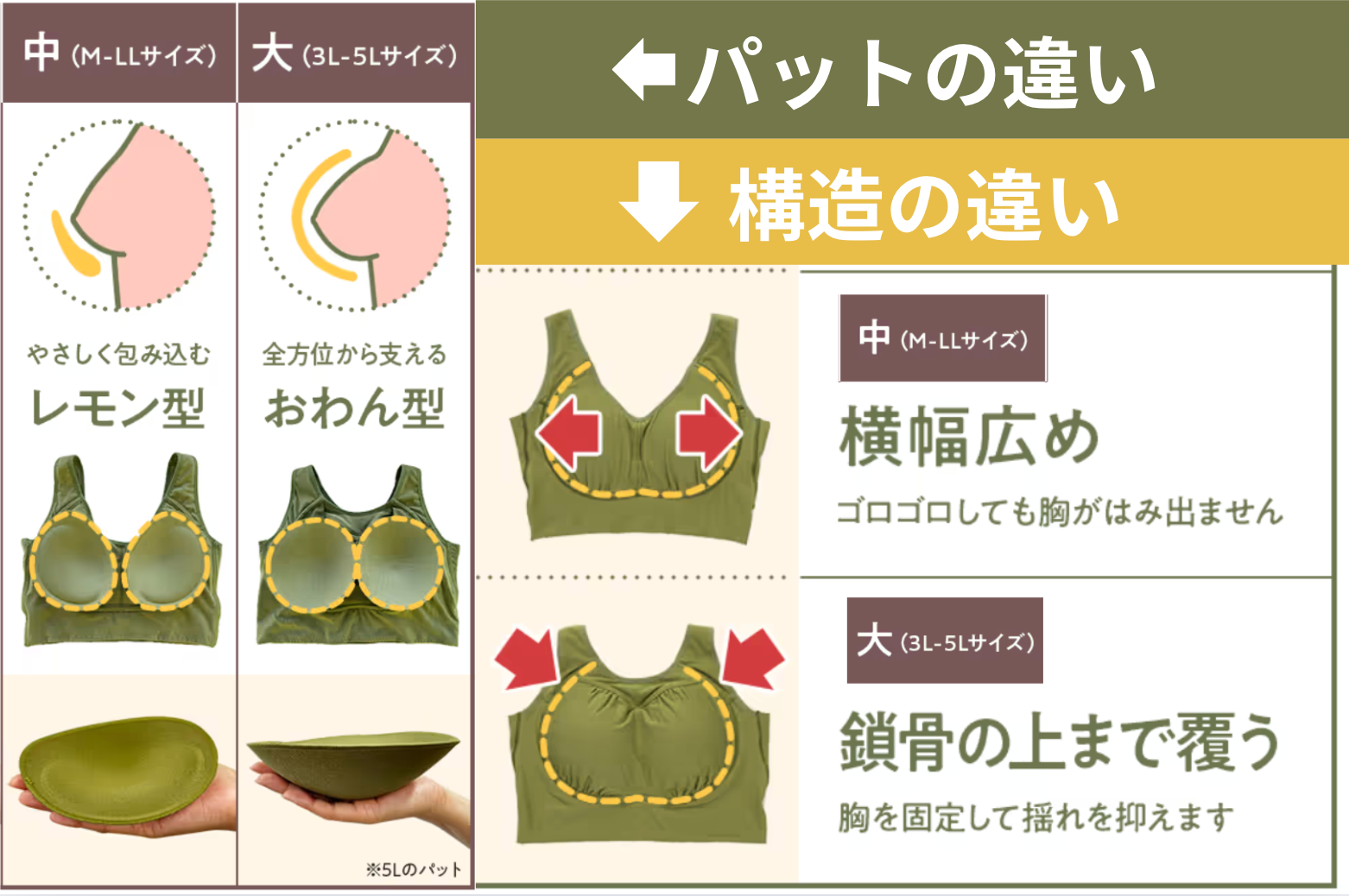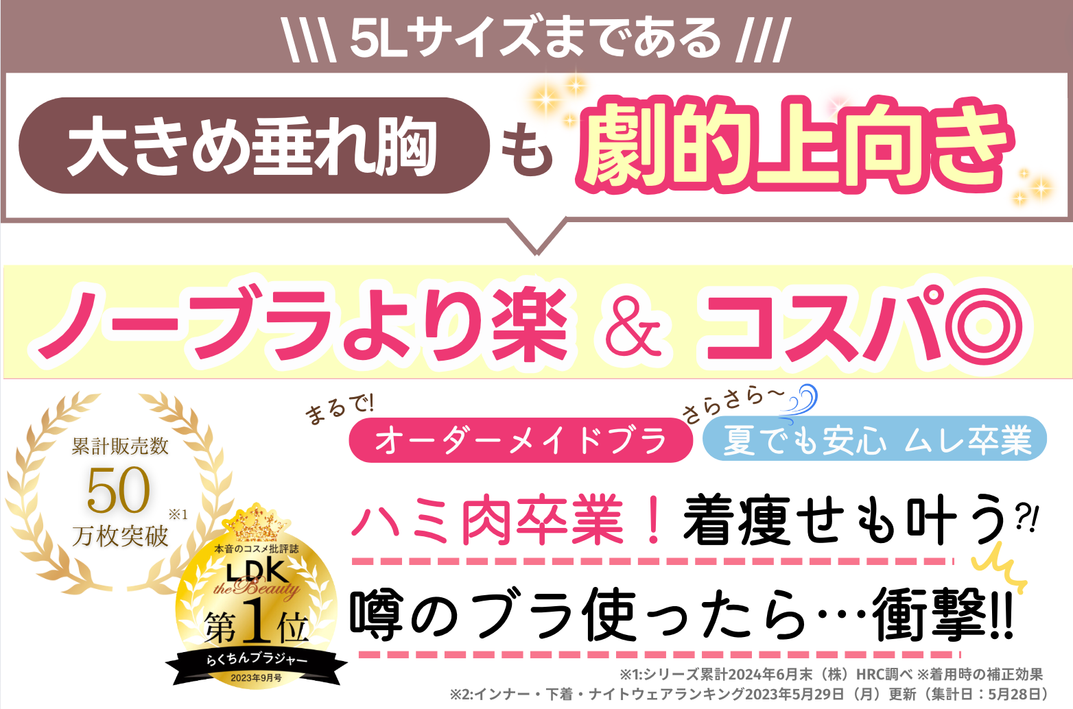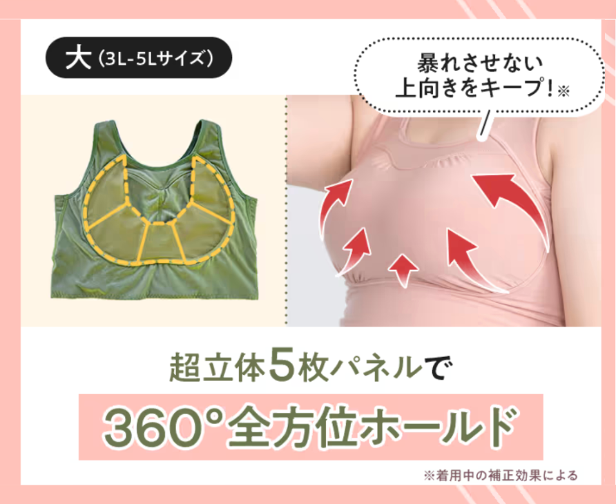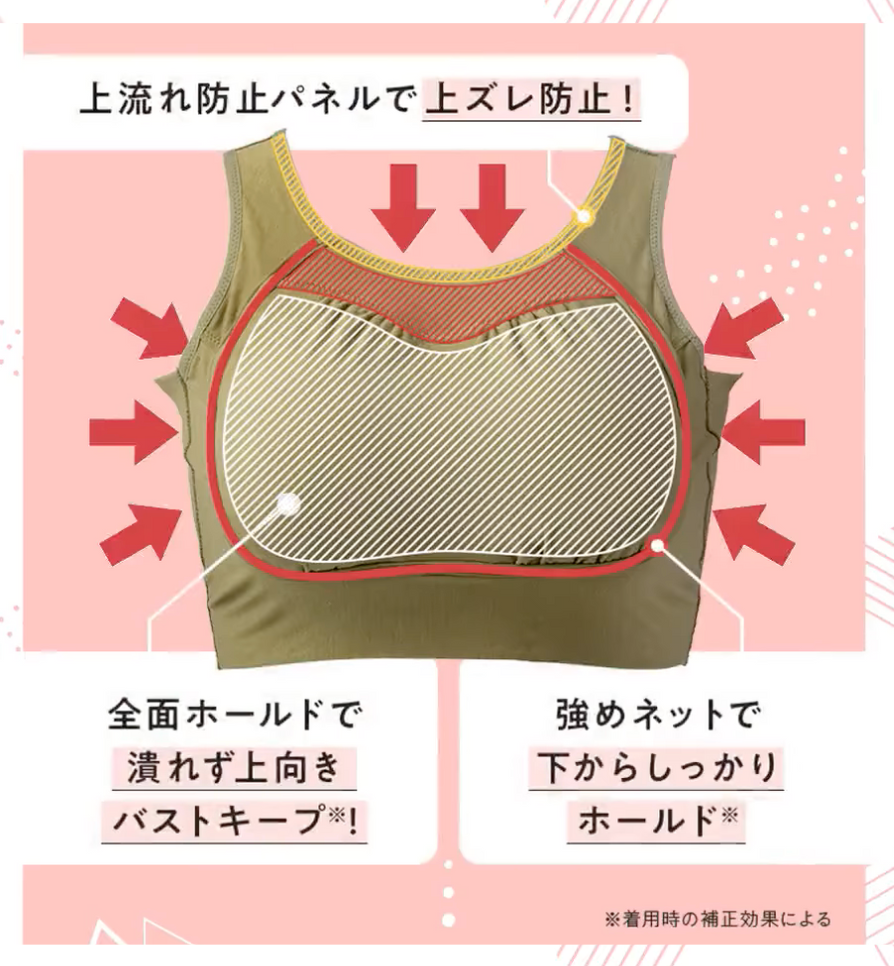 【大きめバストさん専用構造】ノーブラより楽なのに上向き美胸が叶うブラ!