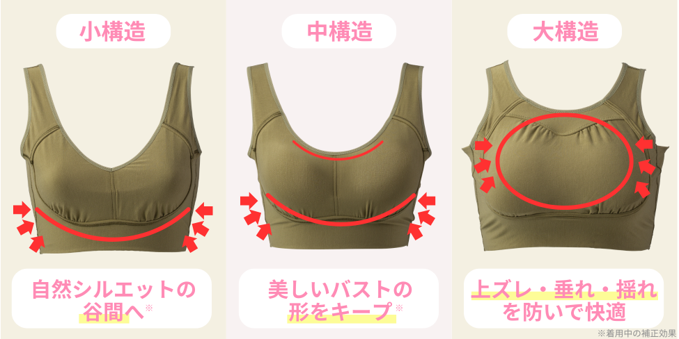 ※1バストケアとは、補整下着を着用することにより、胸の形を補正することをいいます。