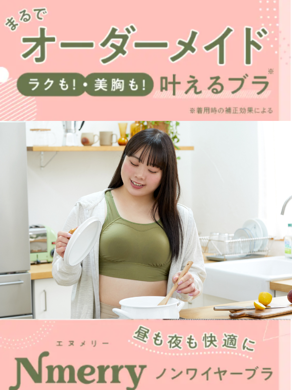初めておうちブラを使ってます。Nmerryは在宅ワーク中や寝る時など、長時間つけていても痛くならないので、嬉しいです。どんな体の向きでもホールドしてくれるので、垂れる心配もなくて安心です!